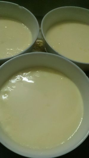 打开看看蒸好的双皮奶,热的哦,放凉再放冰箱两小时。如果不喜欢凉的可以直接加鲜果或者果酱可以食用。夏天嘛,放冰箱里出来的口感真的很棒。