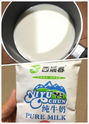 牛奶+糖放锅煮一下,只须把糖煮溶