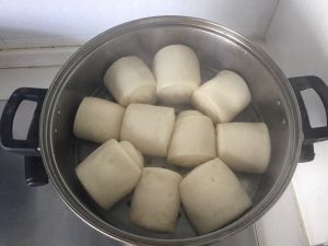 将面剂子整齐的摆放在蒸笼中,盖上盖子再醒15分钟左右,然后开火蒸15-20分钟