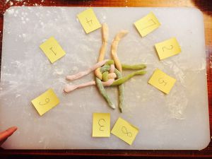 取出面团揉5分钟,再搓成细长条,切成小块.