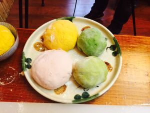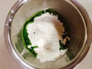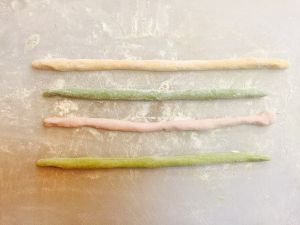 深绿色面团,面粉150g:做法除了把苋菜水换乘菠菜汁以外,剩下的和粉色面团相同