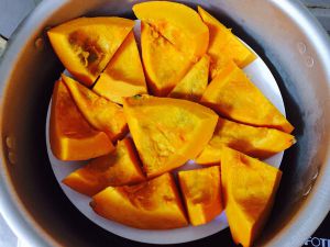 南瓜切块蒸熟(凉水上锅大火蒸大概20分钟)