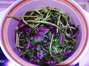 苋菜洗净煮水,要使劲按压搅拌以便煮出的水颜色深