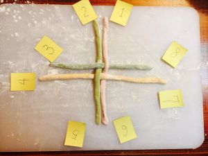 继续,1、4交叉,3、6交叉、5、8交叉,2、7交叉,这次单数压在双数上面,纸片也要换过去哦