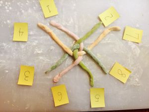 再往下,1、6交叉,3、8交叉,2、5交叉,4、7交叉,这次换成双数压单数,换纸片哦