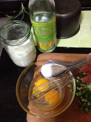 鸡蛋用小半勺细砂糖,3—5滴醋给打成蛋液,这样炒出来的鸡蛋花蓬松,鲜嫩~