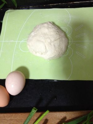 放入适量的面粉,加两个鸡蛋,添加适量的温水,和出一团面,放置10分钟……