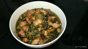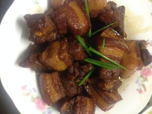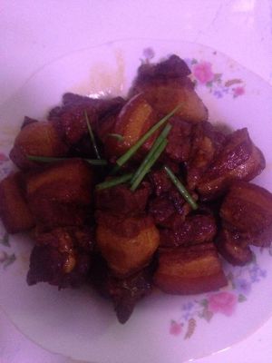 蒸至一小时后,OK啦!!!没有热气,全被油盖住。 这是淮阳菜系里很有名的雪里红烧肉。雪里红就是雪菜,如果是雪菜干,那当然更好!