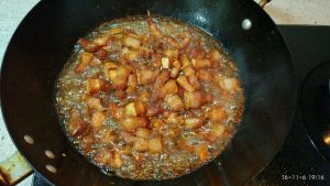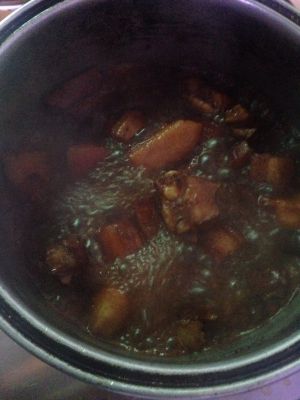 然后大火煮开,再转小火,慢慢炖,喜欢吃软烂一点的就多炖一会,等到肉收汁就可以出锅啦