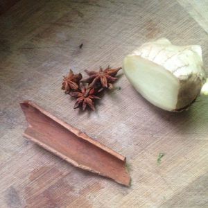 然后锅中加入八角,桂皮,生姜再稍微炒一会