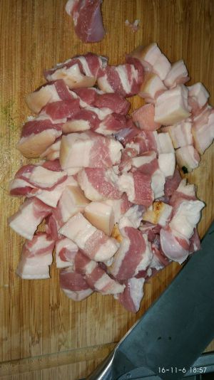 将五花肉切四方块'我通常切的比较小'因为这样熟的比较快哈