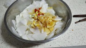 搅拌均匀,让酱汁充分浸泡萝卜片;