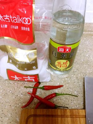 准备食材和工具:白萝卜1根、小米辣适量、蒜瓣适量、白糖40克、酱油心生80克、小鲜侣调味汁适量、香醋40克 鹅妈妈钛晶锅、特百惠腌泡盒