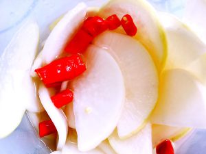经过一晚上的酱汁浸泡,整个萝卜的口感更加的酸甜鲜辣爽脆,好吃到停不下来!