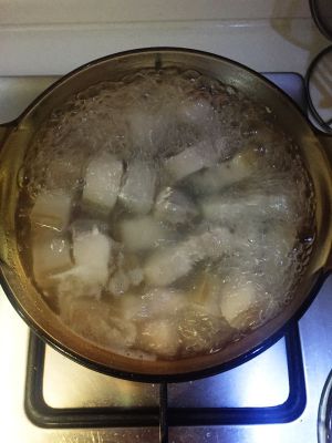 肉加清水,料酒,香葱,姜片焯水,撇去浮沫,盛出待用