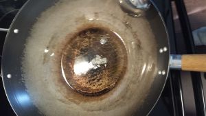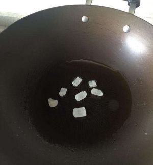 加油,放入4块冰糖,等出现糖色泡沫即可放入五花肉块