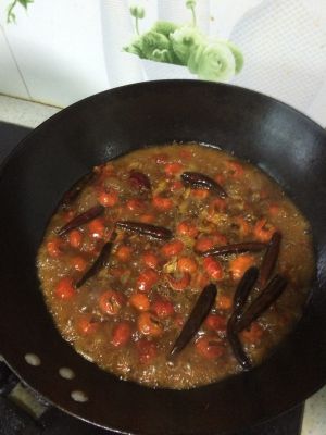 余油下葱姜蒜,干辣椒,花椒,豆瓣酱,适量水炒香。