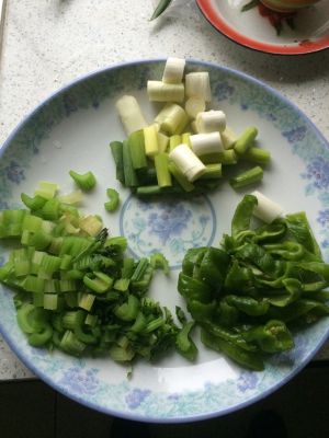 打开锅盖倒入青菜(提前煮半熟),辣椒,葱,蒜,转大火,翻炒2分钟即可出锅