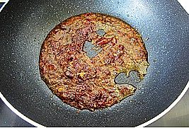 锅中放一大勺油,油热后将豆瓣酱下锅煸炒,直到煸炒出红油;
