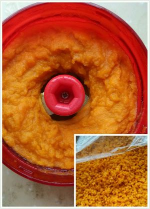 南瓜去皮去瓤,洗净,切成小块,盖上保鲜膜蒸熟。蒸熟后趁热用料理机打成南瓜泥!