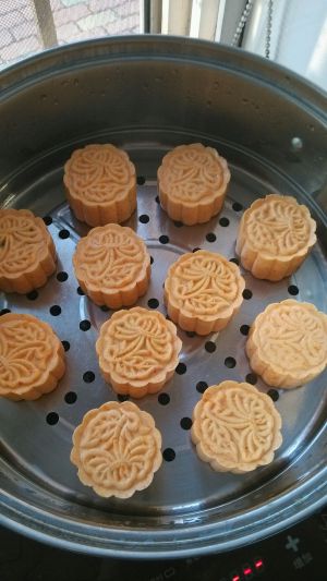 蒸锅煮开,在蒸屉上抹一层食用油 ,再把豆沙馅南瓜饼放上去,盖盖,大火蒸15分钟即可。