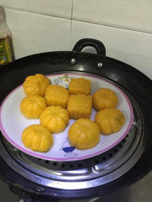 蒸锅里放入适量的清水烧开后,放入做好的南瓜胚。