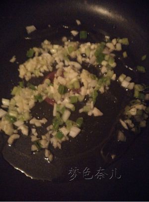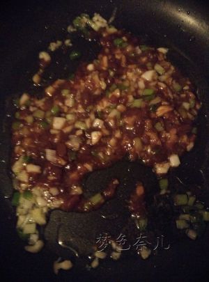 煮鱼香汁,预热锅下油,先下姜蒜葱末炝香;