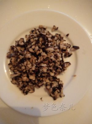 将杏鲍菇丁、香菇丁、豆腐泥、鸡粉、盐、5ml淀粉一起混合抓匀,成了豆腐混合泥;