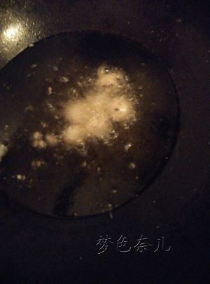 2克淀粉、15克糖、2克盐、10克醋、20克生抽、50毫升水搅拌成鱼香汁浇入锅中;