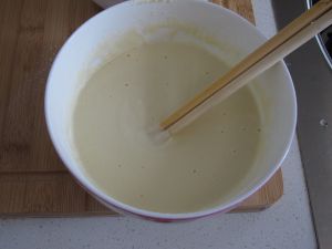 鸡蛋打散,加入面粉,再加入水,调成有稠度的面糊