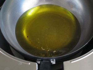 锅内倒油,烧热