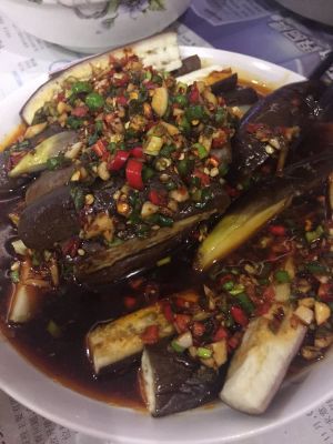 茄子洗净切条(手指一般大小),放入盘中,上锅蒸熟