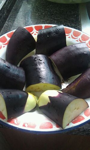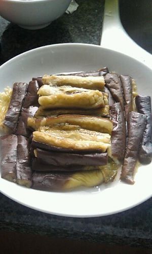 茄子切断 蒸熟(筷子插下去软了就可以啦)