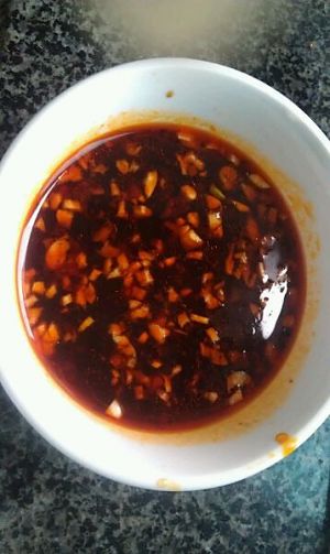 小碗里入盐 鸡精 白糖 用开水化开 冷后放蒜