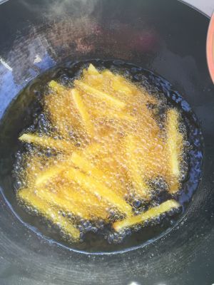 土豆切成条,炸出来