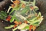 准备食材,虾洗净,用热油把虾抛一下,注意,虾变为金黄色后待用。