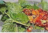 再倒入香葱叶,炒均匀,然后撒上熟芝麻,装碟开吃!