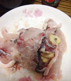 前一天腌制一下,放黄酒、生姜、生粉、盐、鸡精、糖、用手抓捏、、