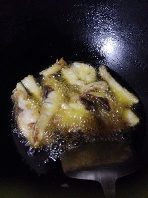 油烧热把鱼块放下去炸、适当的时候给鱼翻个身,不能用锅铲翻会碎的。