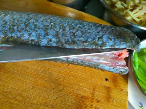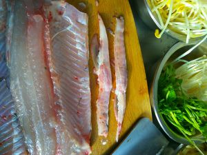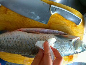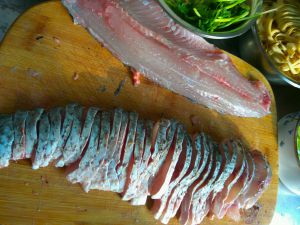 如果切不好片,就直接带着鱼骨,这个切法简单,而且味道更好