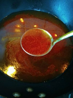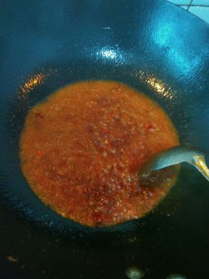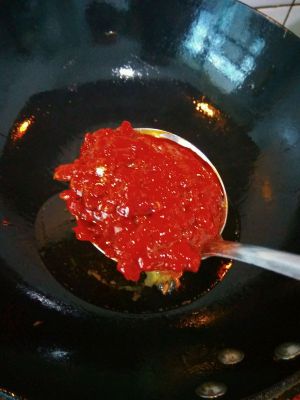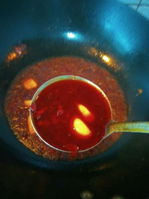 起锅烧油,放入丹丹酱料包,没有也可以用郫县豆瓣酱3勺,炒香炒出红油,加入约2.5升开水,大火煮开1分钟入味。