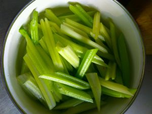 放入切好的芹菜、洋葱和蘑菇,继续煮10分钟,加入盐和胡椒粉