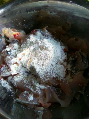 .草鱼处理干净,切片,加入料酒、葱、姜、胡椒粉、蛋清、淀粉和盐,腌制1个小时