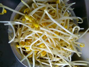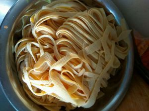 第二步放泡好的粉条,煮3分钟,捞出入盆。