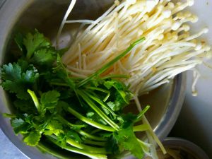 放盐,鸡精,料酒,淀粉,胡椒粉,蛋清抓拌均匀,腌制半小时。这个时候去洗青菜,泡粉条。