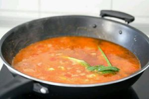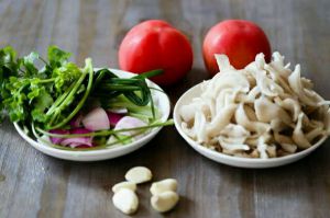 西红柿去皮切成小块,锅中放油,油热时,放入大蒜和葱,炒香,加入西红柿丁。文火炒7到10分钟,添加热水,炖煮20分钟