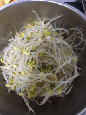 长芽黄豆芽洗净用水焯一下