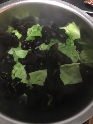 泡好的木耳和大头菜一起放开水里焯一下