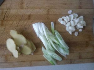 葱姜蒜、干红辣椒、花椒皮,分别切片