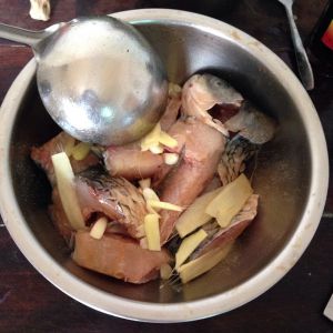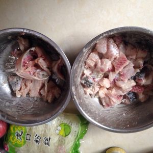 鱼头和鱼骨另外腌制 加料酒 盐 姜片
